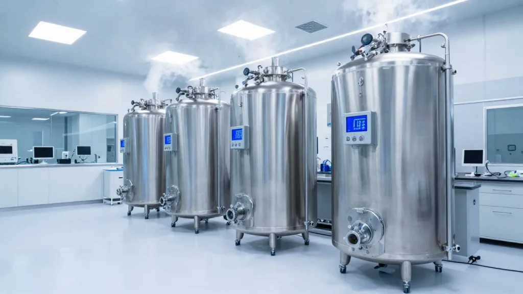 - Analisi e crioconservazione: Il campione viene analizzato, separato e conservato in vapori di azoto liquido a $-196$ °C.